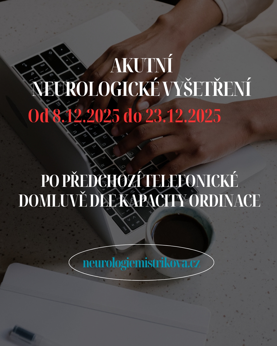 Pro neregistrované pacienty nabízím akutní neurologické vyšetření po předchozí domluvě, která je závislá na kapacitních a provozních možnostech ambulance. Pro více informací o dostupných termínech a podmínkách, navštivte, prosím, naši stránku ZDE.