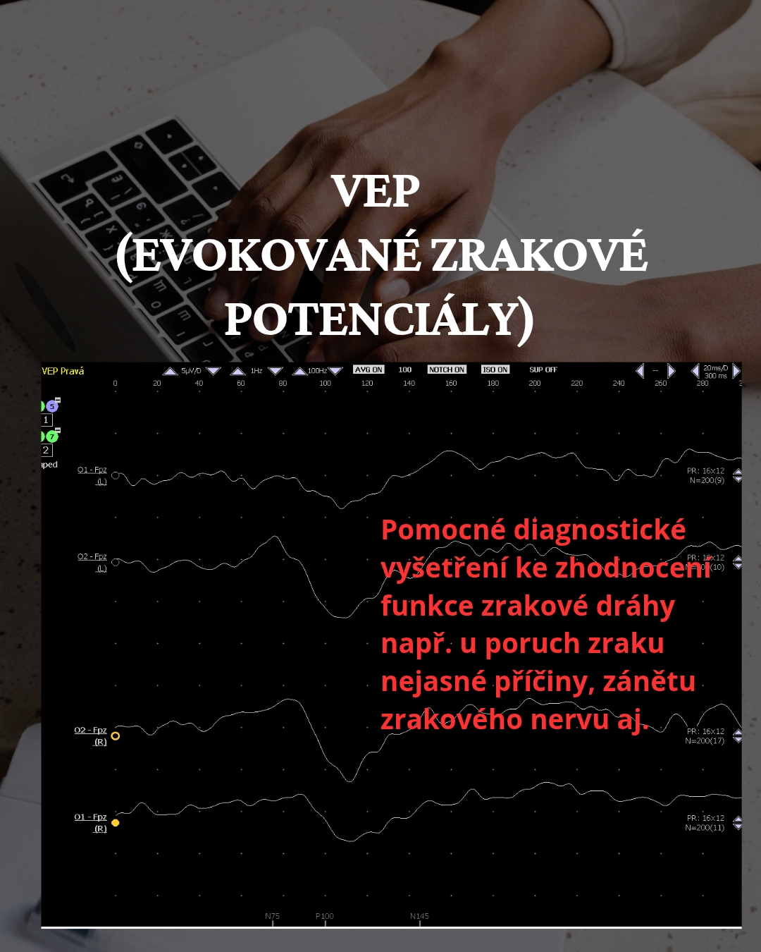 neboli vizuální (zrakové) evokované potenciály, patří mezi pomocné metody ke stanovení postižení zrakové dráhy, např. u pacientů se zánětem zrakového nervu. Vyšetření provádí vyškolená zdravotní sestra. Pacient sedí a sleduje obrazovku se šachovnicí střídavě pravým a levým okem. Odpovědi se snímají pomocí elektrod připevněných na hlavě. Vyšetření není bolestivé.